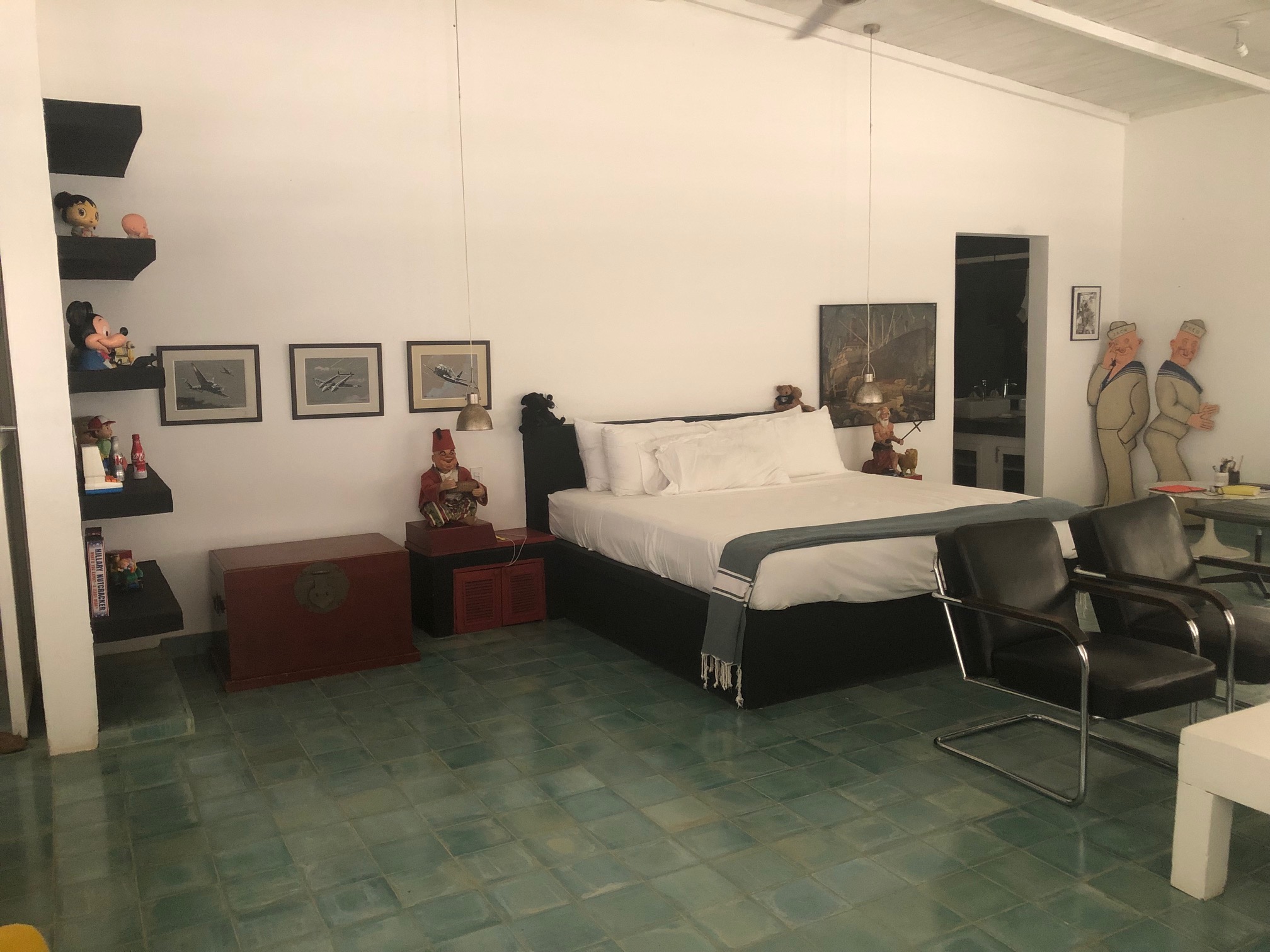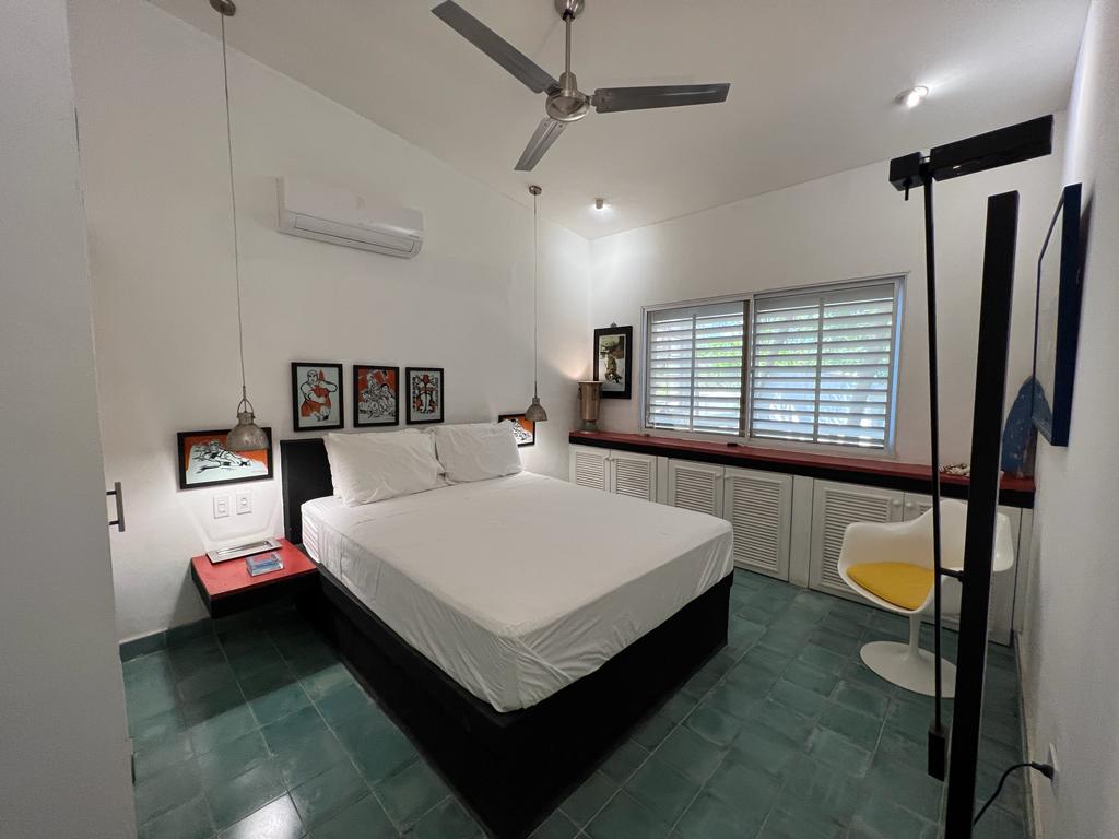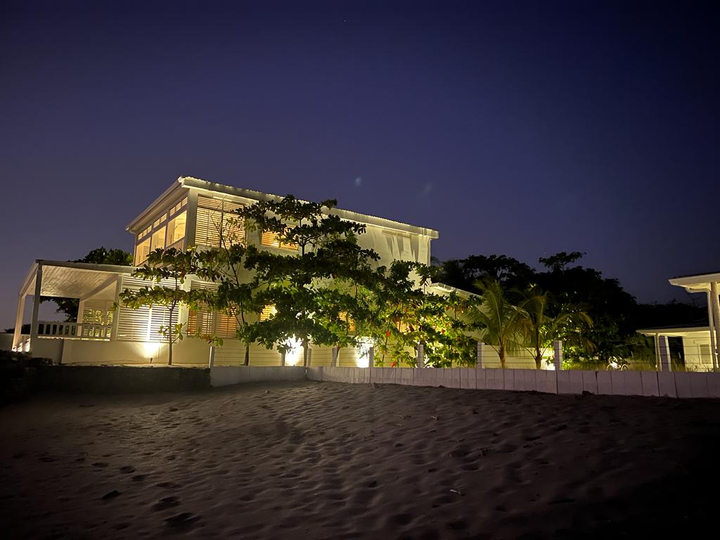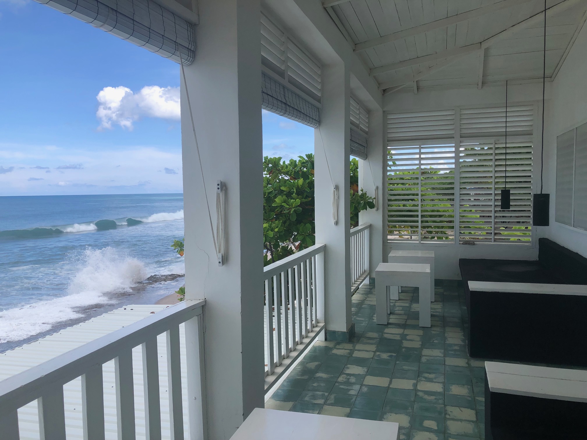 The main house includes 3 bedrooms and 3.5 bathrooms; A/C, a large kitchen, living & dining area, and a large front deck. The whole upstairs is a large master bedroom with a walk-in closet and large balcony overlooking the ocean. Recently fully renovated with new tile flooring throughout the home + a new insulated white roof, & new and mirrored windows the home maintains its coolness on its own.