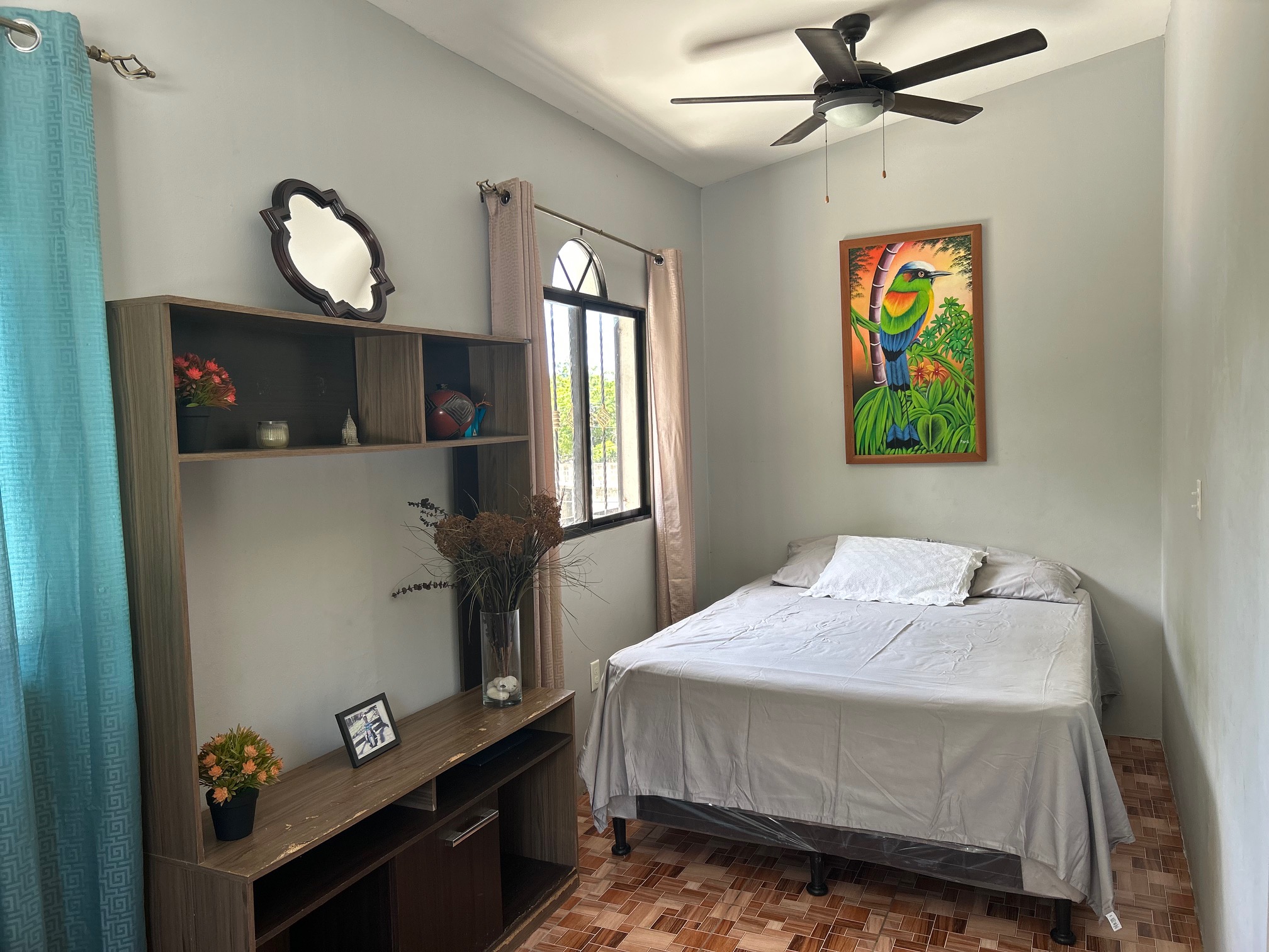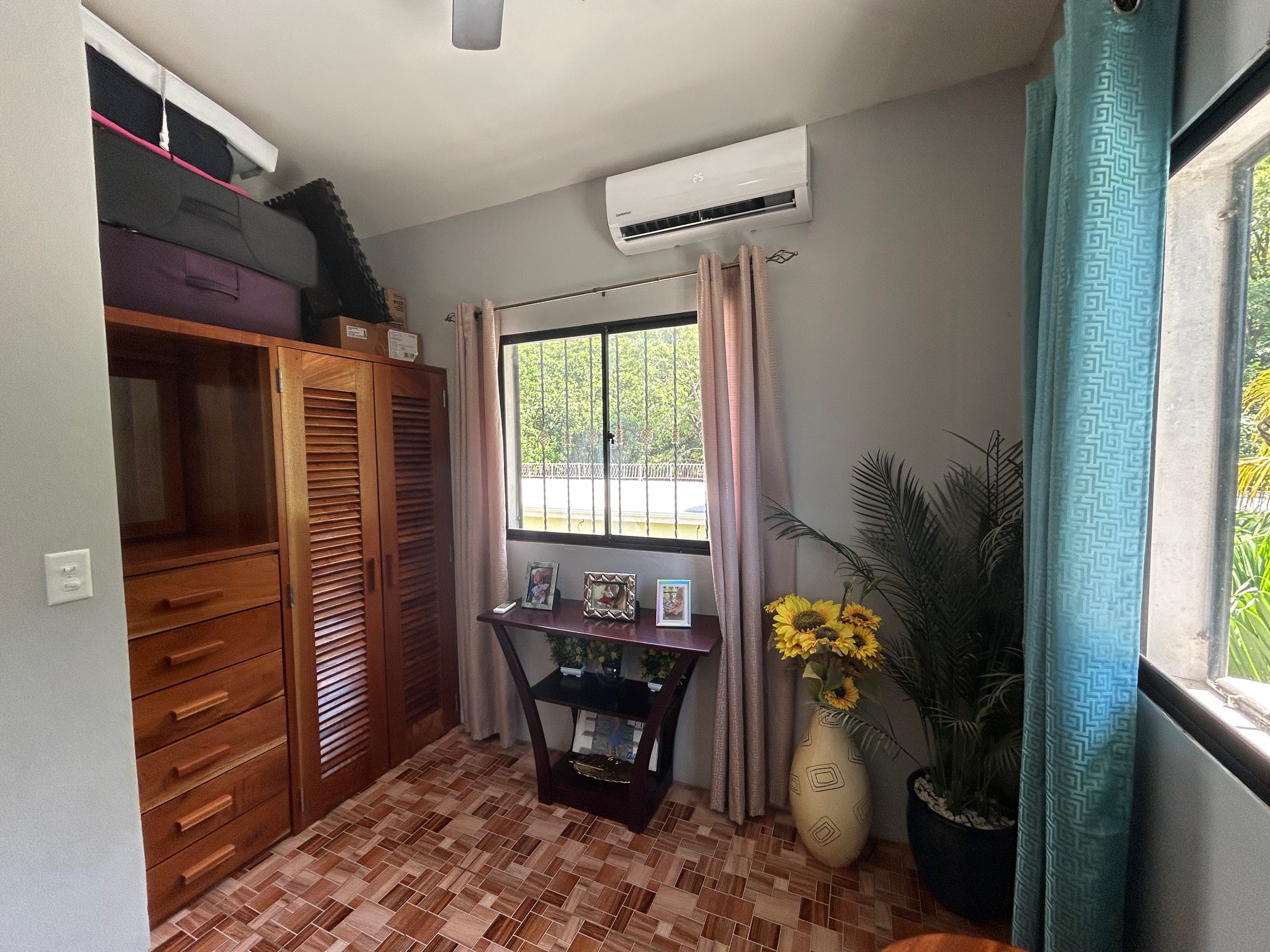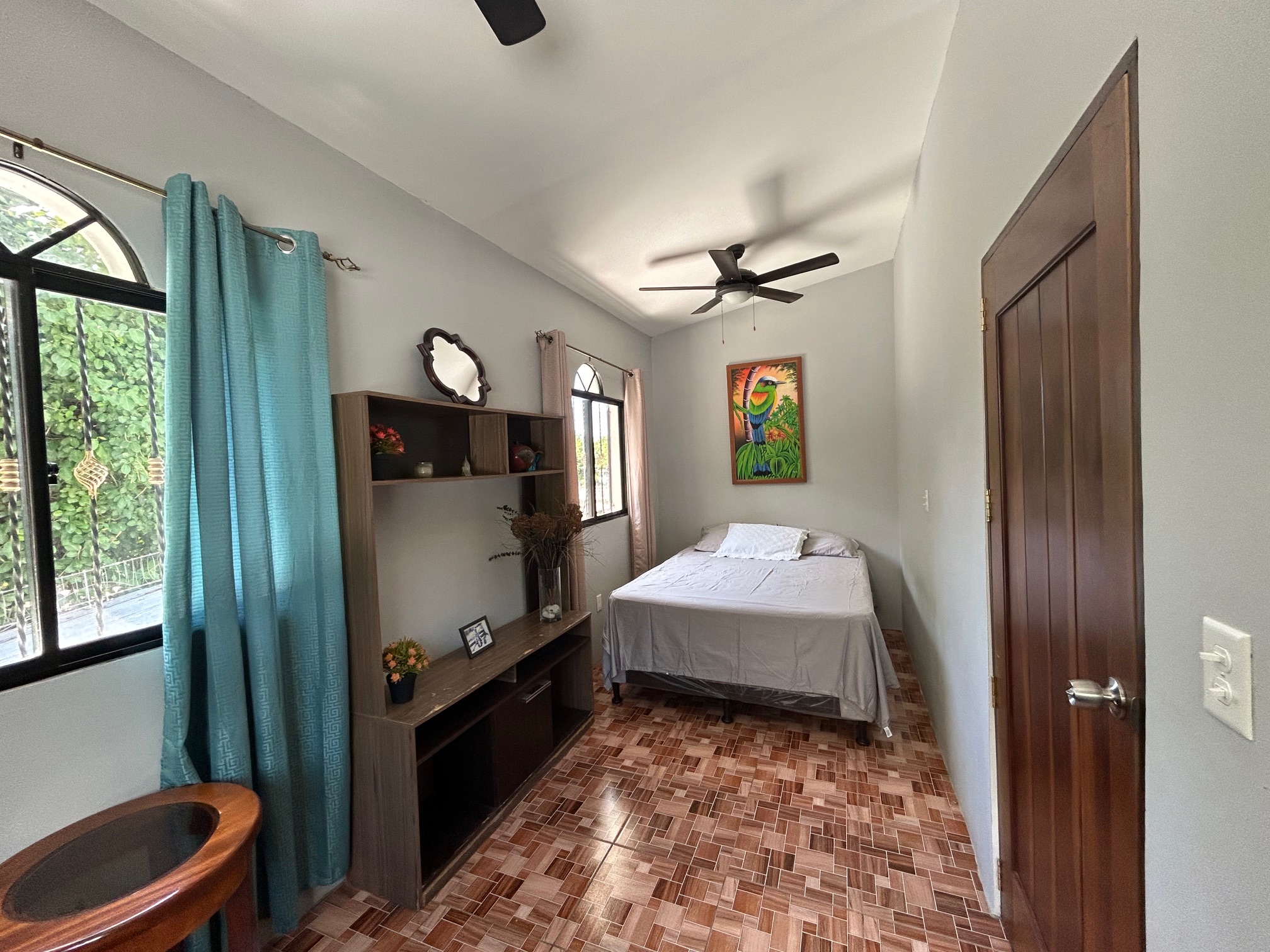 The upper floor separates this property from a standard commercial investment. Three bedrooms, two bathrooms, and a covered indoor/outdoor balcony create living quarters that function as a proper home rather than an afterthought. All three bedrooms include air conditioning, which is a detail that matters in this climate and one that guests and residents alike notice immediately.
