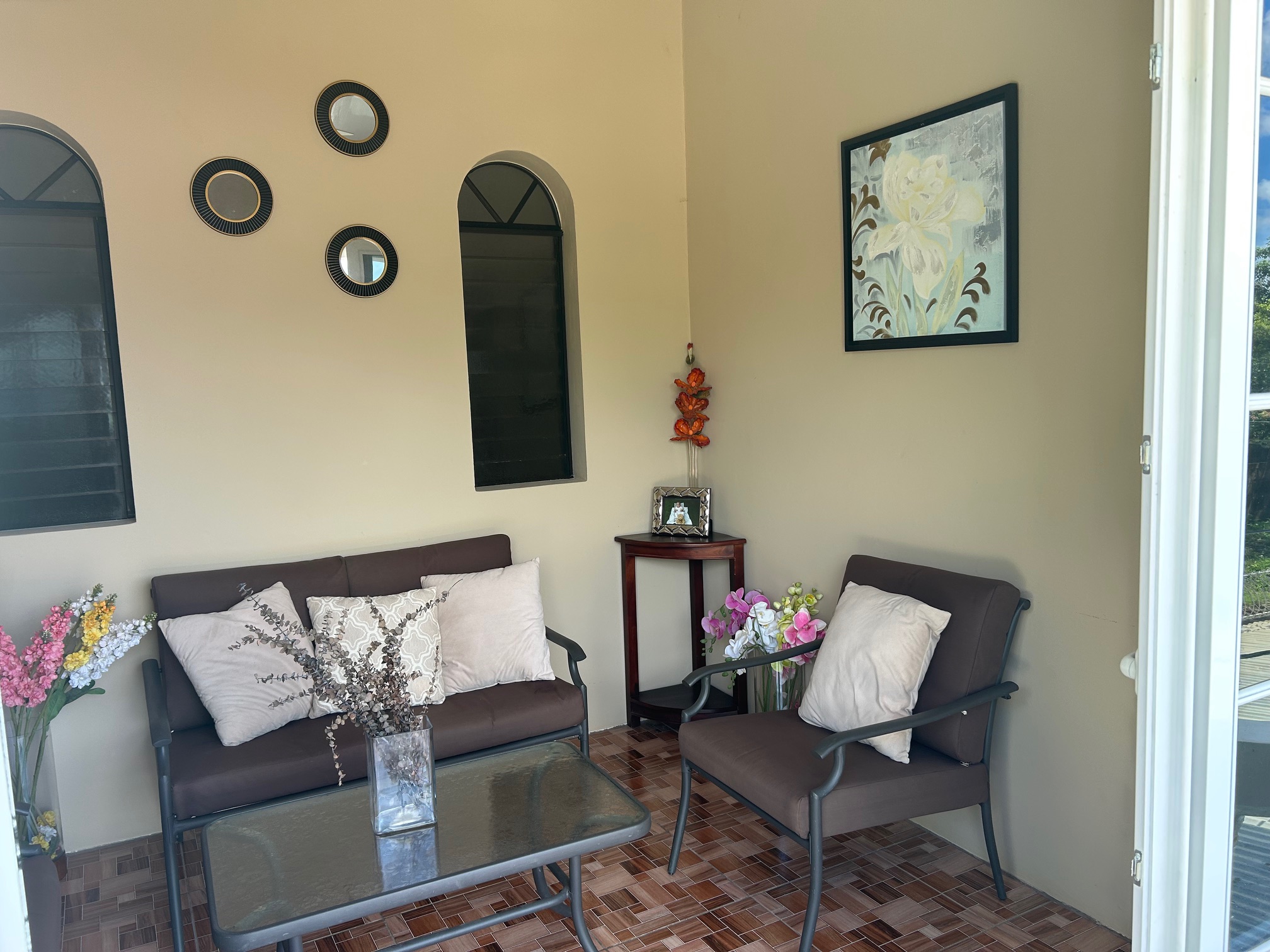- Upper floor: 3 bedrooms, 2 bathrooms, covered indoor/outdoor balcony