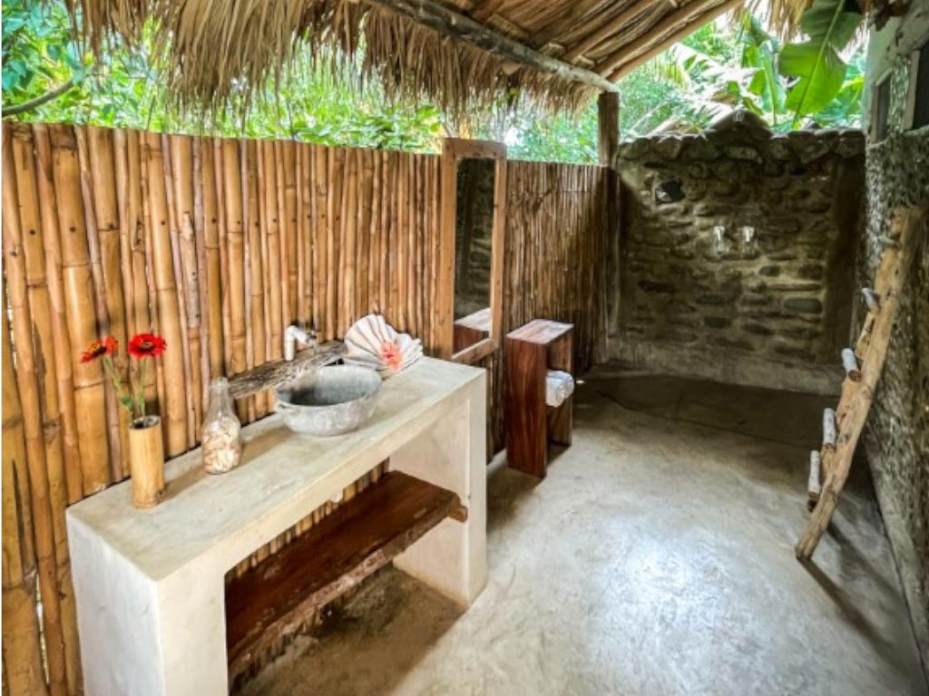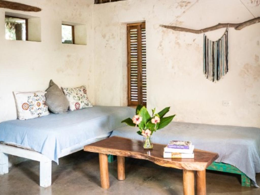 Tierra Nahua was not built quickly. The owner made choices that most developers would not make simply because they were the right choices. Earth bags packed with natural fill for the walls. Coconut fibre woven into the structure. Traditional palm thatch laid over the rooflines. These are not style decisions dressed up as values. They are materials that tropical builders have used for centuries because they work. They insulate without machines, regulate temperature without power, and outlast standard coastal construction by decades. Furthermore, the result is a collection of casitas that feel alive rather than assembled. The walls breathe, light moves differently, and air inside flows with good energy.