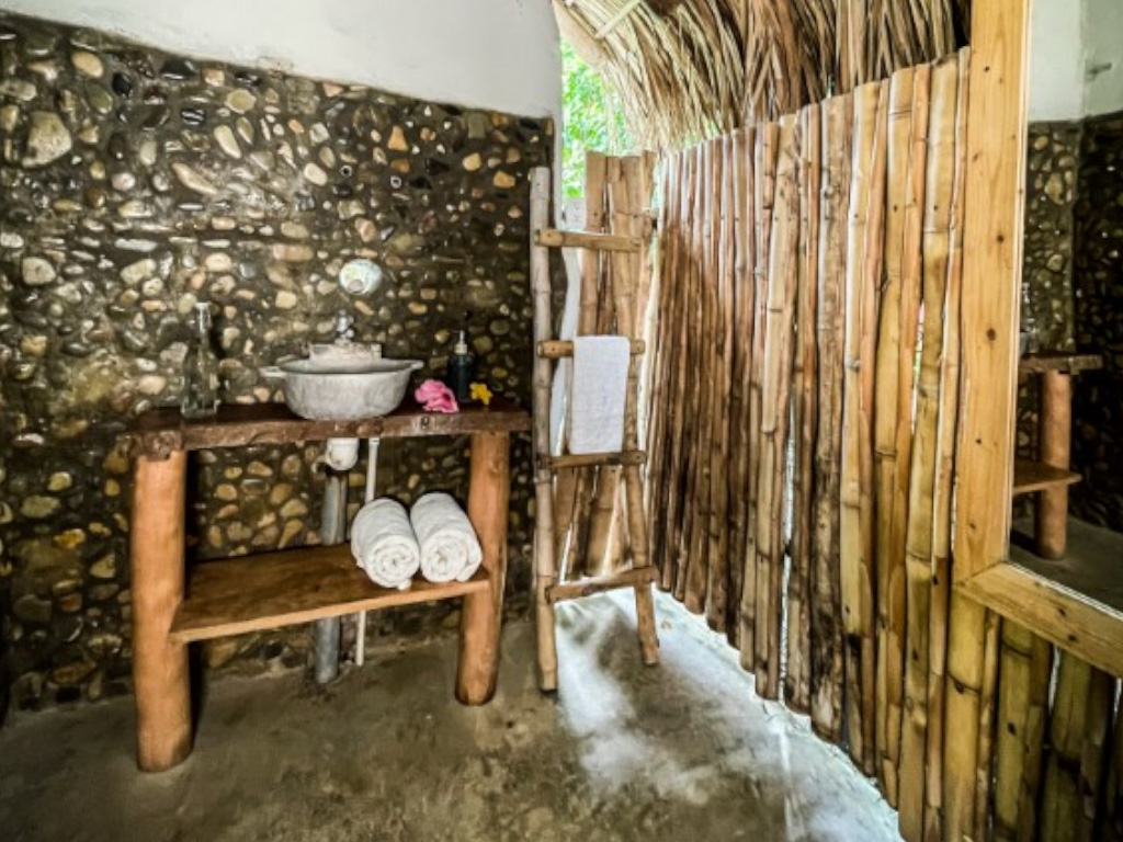Coconut fibre woven into the wall structure adds both insulation and flexibility. Unlike rigid materials that crack under tropical temperature changes, coconut fibre moves gently with the building. Furthermore, traditional palm thatch over the rooflines delivers the most natural form of tropical insulation available. Thatch breathes, sheds rain efficiently, and creates a quiet inside the casitas that softens the coastal environment into something peaceful. Consequently, these materials together create a building that works more like a living thing than a constructed one. Therefore, a guest inside one of these villas feels sheltered without feeling closed in, and that difference matters deeply in a place where people come specifically to feel close to nature.