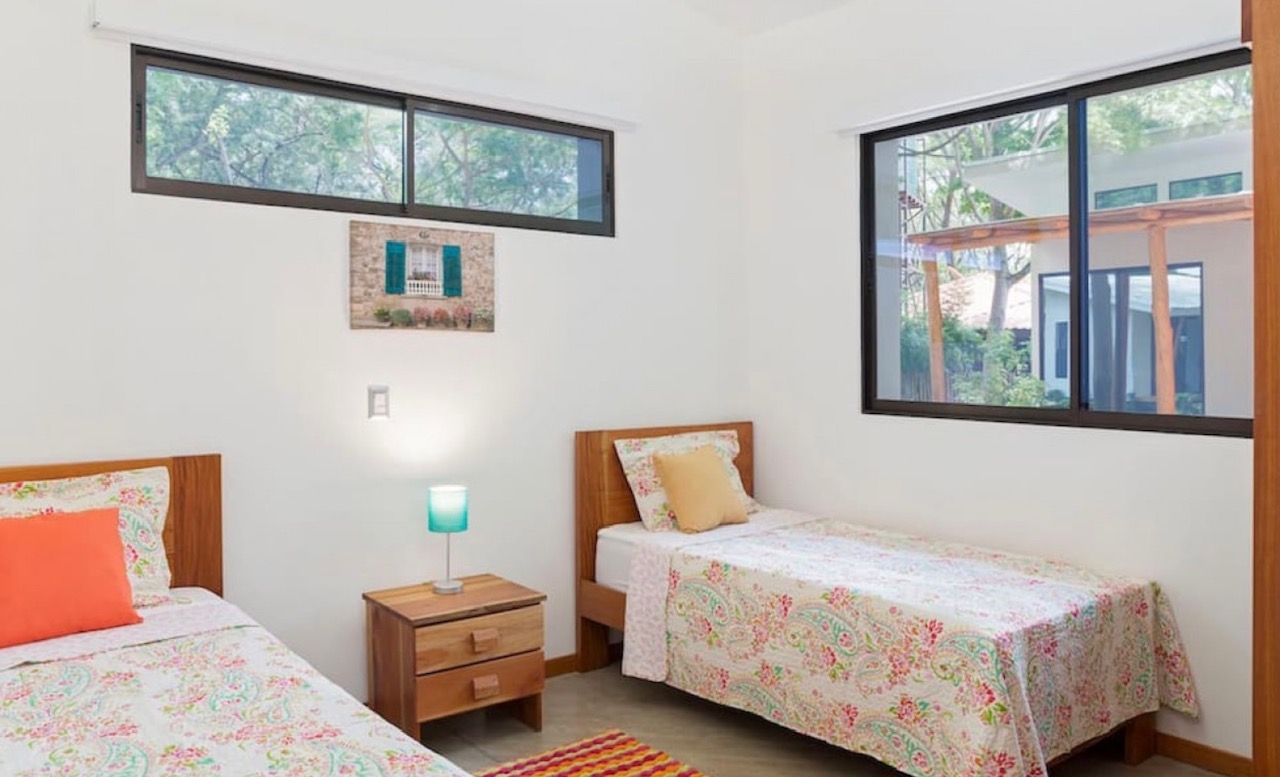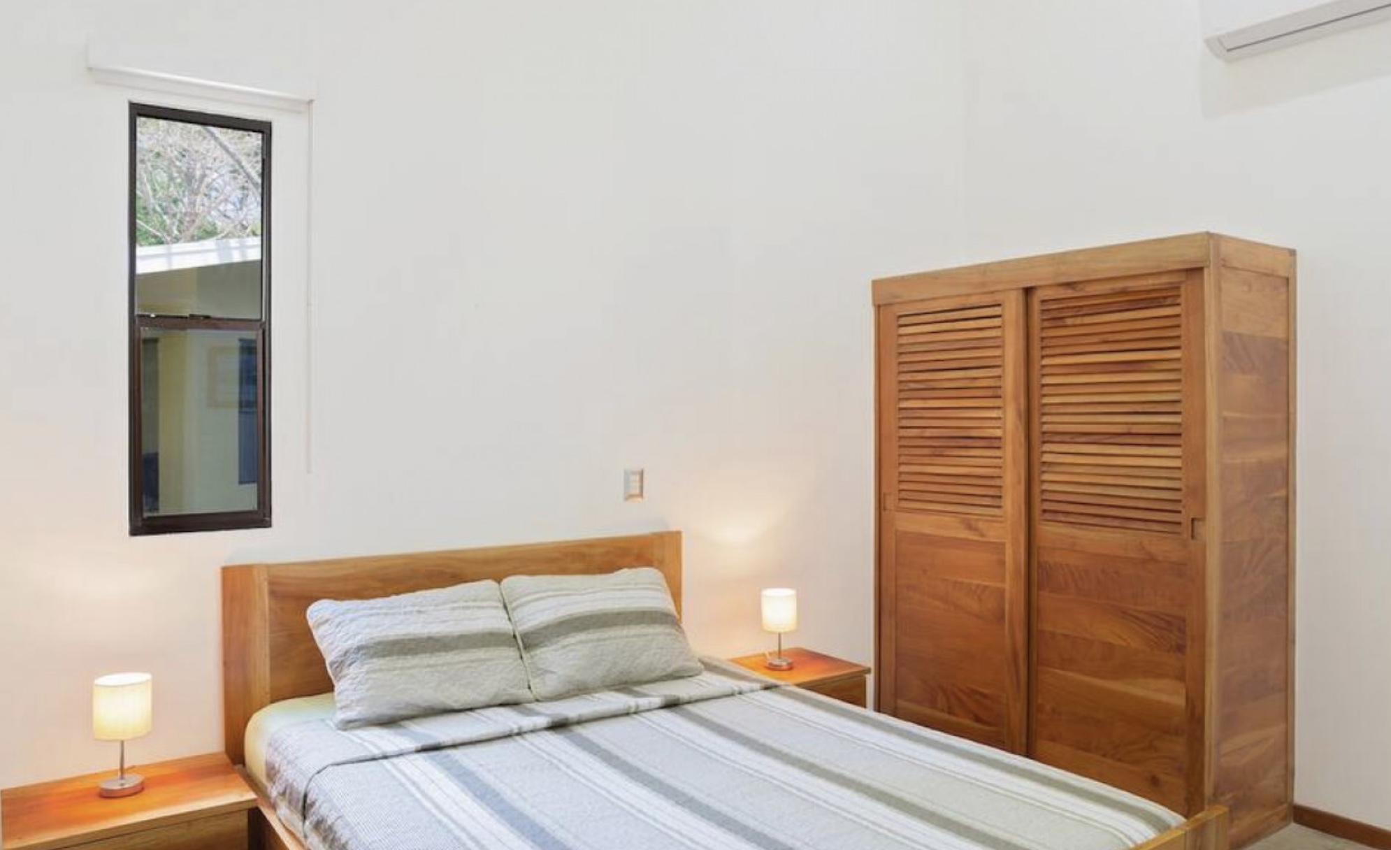 The master bedroom includes a queen bed, a full closet, and an en-suite bathroom. Meanwhile, the guest bedroom holds two twin beds and a spacious closet, making it functional for families, couples traveling together, or rotating rental guests. Moreover, the reforested teak furniture throughout gives the home a level of material quality that reads immediately to anyone who walks through the door. Teak holds up in tropical climates and looks better over time. Therefore, that detail alone drives better reviews and stronger repeat bookings for owners who rent.