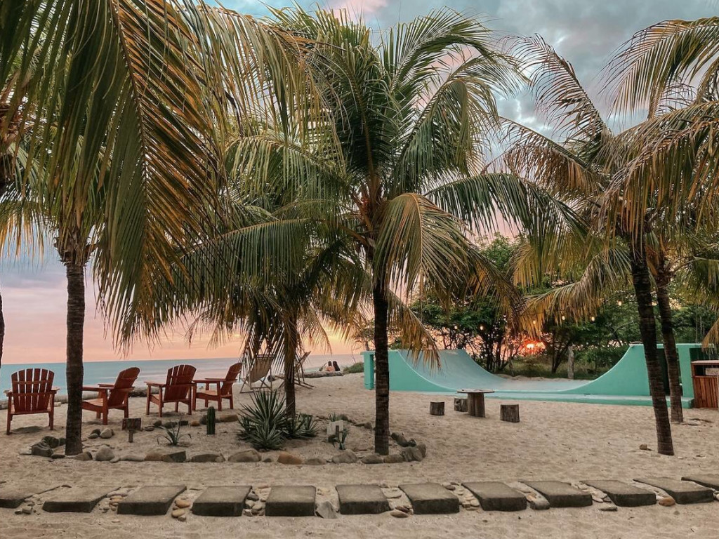 The half pipe and skate ramp round out a guest experience that goes beyond standard surf hotel programming. Surf culture and skate culture have always overlapped and the guests who travel to Playa Santana to surf are the same guests who will spend an afternoon on a half pipe between sessions. Additionally, the shaded seating and hammock areas give guests a reason to stay on property during the heat of the day. Therefore, every element of the beachfront section has been designed to keep guests engaged, spending, and coming back.
