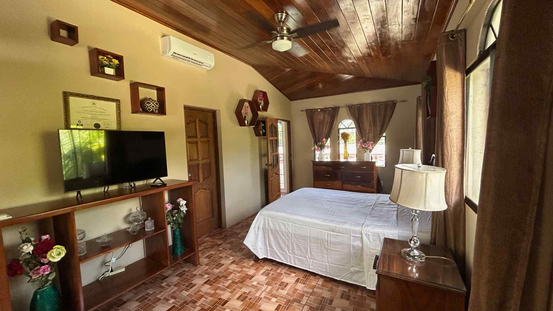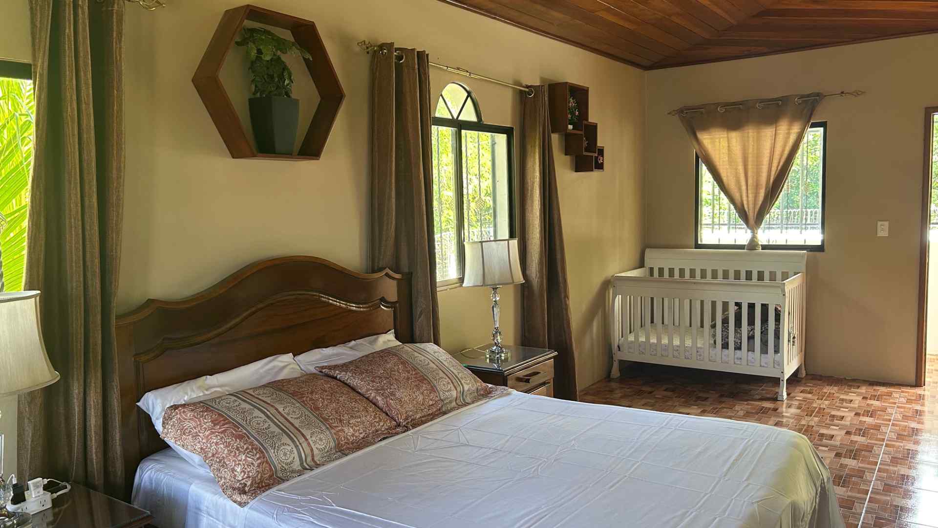 This residential property near Popoyo is a two-story home on Ochomogo Road in Virgen Morena with three bedrooms, two bathrooms, and a fully equipped commercial ground floor. The upper floor delivers a proper residence with air conditioning in all three bedrooms, a covered indoor and outdoor balcony, and a garage. The ground floor comes with two bars, a professional kitchen, a dining area, a small office, storage, and two bathrooms, formerly operating as a restaurant and event venue. Furthermore, a caretaker’s quarters, generator room, and a 10-foot brick perimeter wall with serpentine wire complete the infrastructure. At $249,000 this is a rare live-work setup on the main road connecting the Pacific coast to Managua.